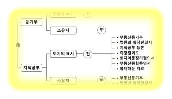 토지의 표시와 법적 권리관계 등을 공적장부인 지적공부에 등록, 공시하고
