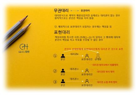 | 표현대리의 효과 | 1. 표현대리는 무권대리이므로, 유권대리의 주장 속에 표현대리 주장이 포함되었다고 볼 수 없다. 2. 표현대리가 성립하는 경우에 상대방에게 과실이 있다고 하더라도 과실상계의 법리를 유추적용하여 본인의 책임을 경감할 수는 없다. 3. 강행법규에 위반되어 무효인 행위에 대해서는 표현대리의 법리가 적용될 여지가 없다. |