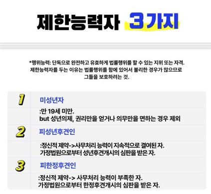 미성년자는 법정대리인의 동의를 얻어 법률행위를 하여야 한다. 만약 미성년자가 법정대리인의 동의 없이 단독으로 법률행위를 한 경우에는 그 법률행위를 취소할 수 있다. |