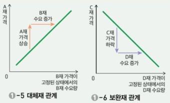 수요가 증가하는 경우 두 재화의 관계를 대체재라고 한다.