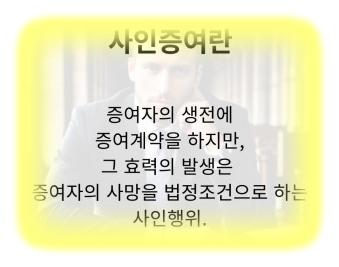 18. 사인증여 : 생전에 미리 증여 계약을 맺었으나 그 효력의 발생은 증여자의