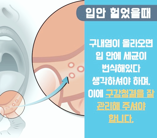 구내염을 예방하기 위해서는 절저한 구강 위생이 필수입니다.