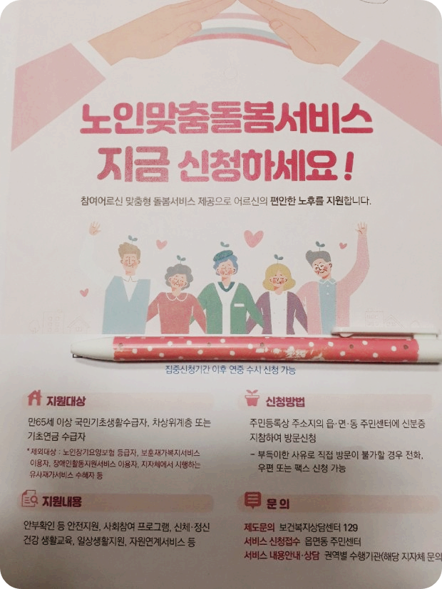 - 공통서류 : 노인맞춤돌봄서비스 신청서, 신분증