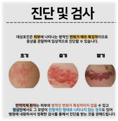 대상포진은 피부에 나타나는 병적인 변화가 매우 특징적이므로