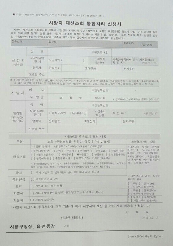 사망자 재산조회를 한 번의 통합신청으로 확인하는 서비스입니다.