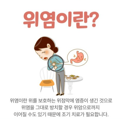 주로 복통, 소화불량, 트림, 구토 등의 증상과 관련 있는 위염은