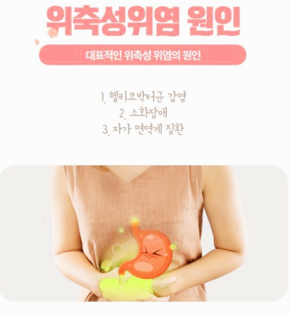 위장에 염증이 유발될 수 있으며, 헬리코박터 파일로리(헬리코박터균)의 감염에 의해서,
